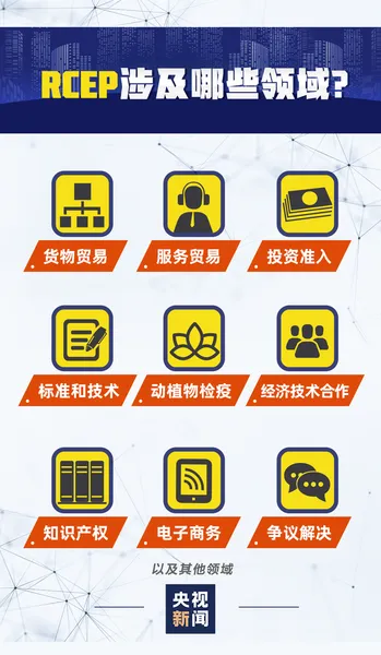 RCEP谈判于2012年11月正式启动,涉及中小企业、投资、经济技术合作、货物和服务贸易等十多个领域。