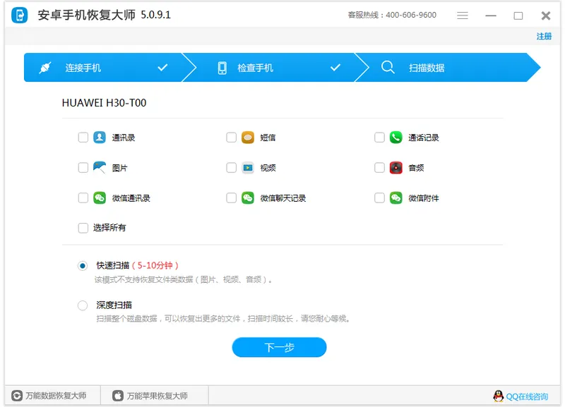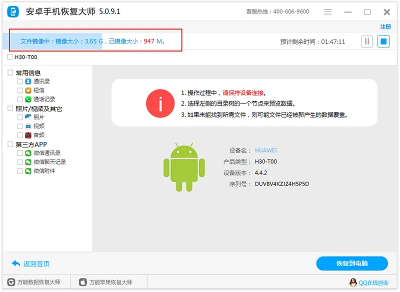 这种情况下一般是能够应用手机恢复专用工具(安卓机数据恢复大师),轻轻松松修复手机上的相片。图1:扫描仪环节 其次,联接安卓机到电脑,并在手机挑选“USB调节”,以后手机软件会自动检索手机上,并联接到手机上,进到挑选数据类型方式,寻找“相片”,启用。