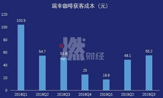 瑞幸咖啡的获客成本,从2018年Q1的104元,逐渐降至2019年Q1的17元。但从2019年Q2开始,瑞幸咖啡为了推小鹿茶,又开始新一轮补贴大战,并聘请了新的代言人刘昊然和肖战,这增加了拉新的成本,2019年Q2和Q3的获客成本分别涨至48.1元和55.2元。