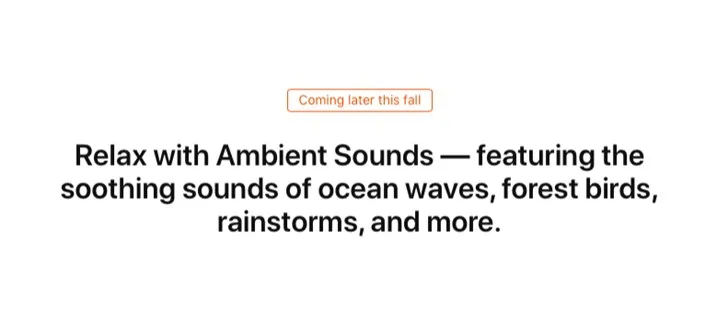苹果还会在今秋为HomePod添加环境音效功能(不包括中国大陆),包括海浪、鸟鸣、暴风雨等舒缓心情的背景音效。