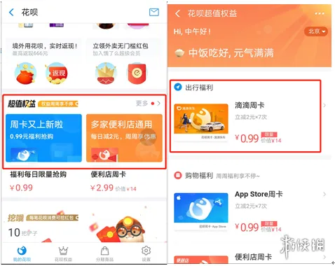 二、花呗滴滴周卡优惠