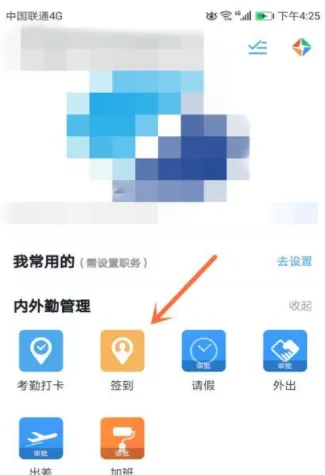 3、第三步,选择点击“内外勤管理”选项中的“签到”按钮。