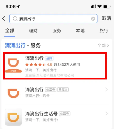 微信的滴滴出行小程序