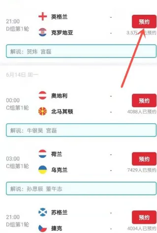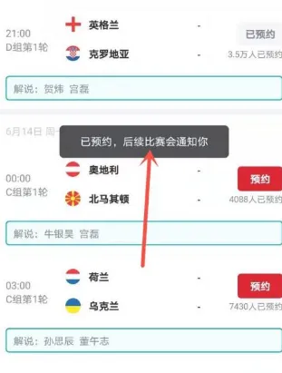 在赛事列表中找到要观看的比赛,点击右侧的【预约】。