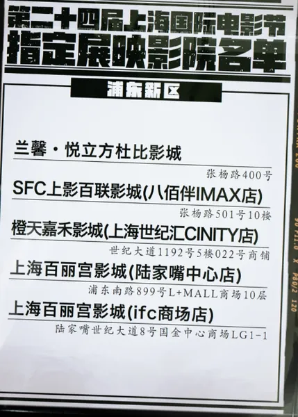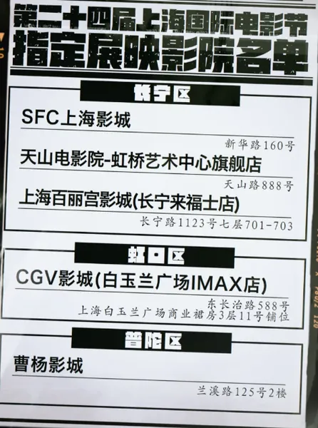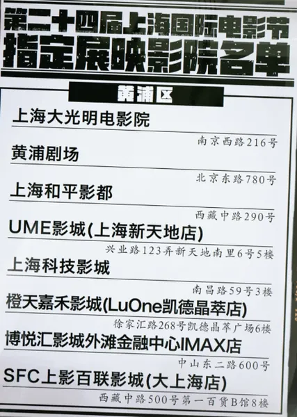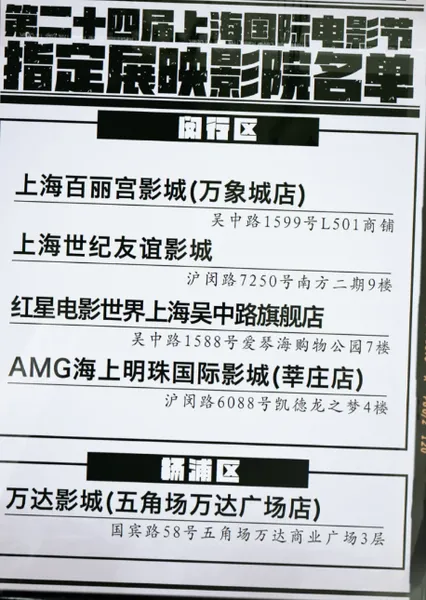 电影院:上海市40家电影院+江浙等少量排期